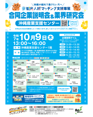 2025年10月9日(木) \\沖縄県観光人材マッチング支援事業・沖縄の観光で働きたい方必見// 【合同企業説明会&業界研究会】 ■日時:2025/10/9(木)13:00~16:00 ■会場:沖縄産業支援センター1階 […]